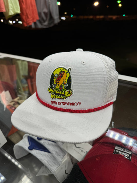 White Glizzies & Greens Flat Bill Rope Hat